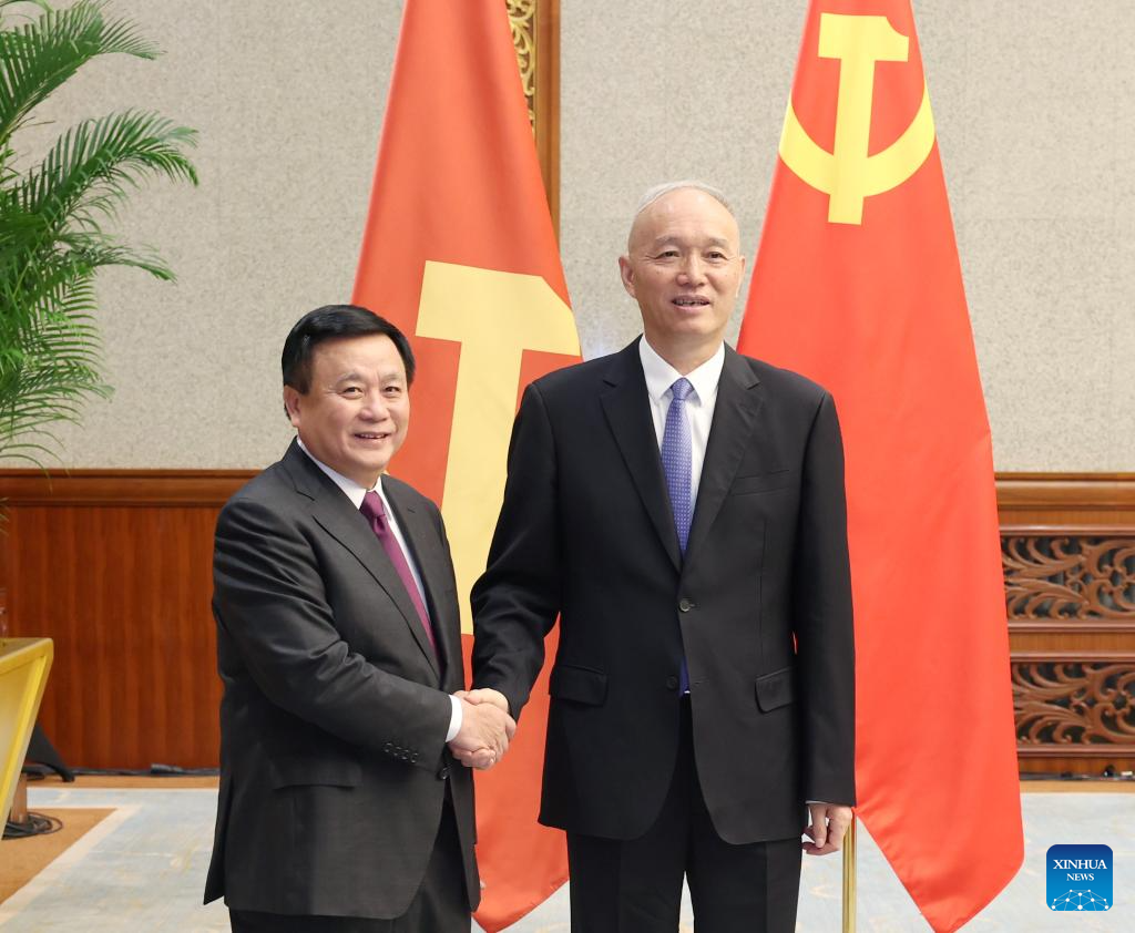 BEIJING, July 10 (Xinhua) -- Senior Communist Party of China (CPC) official Cai Qi met with a Communist Party of Vietnam (CPV) delegation headed by Nguyen Xuan Thang in Beijing on Monday.