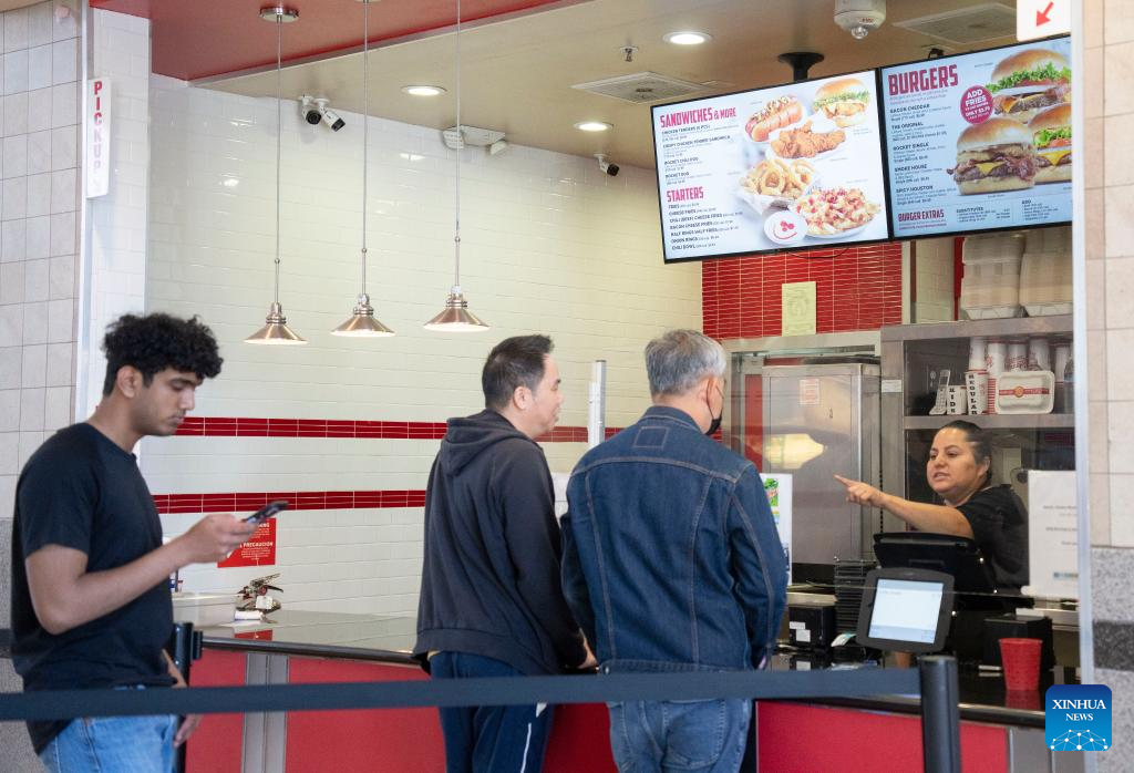 Customers order food at an Outlets in San Francisco Bay Area, California, the United States, July 12, 2023. The U.S. dollar suffered substantial losses on Wednesday after the U.S. consumer price index (CPI) for June showed the rate of inflation slowing to the lowest level since 2021.?(Photo by Li Jianguo/Xinhua)