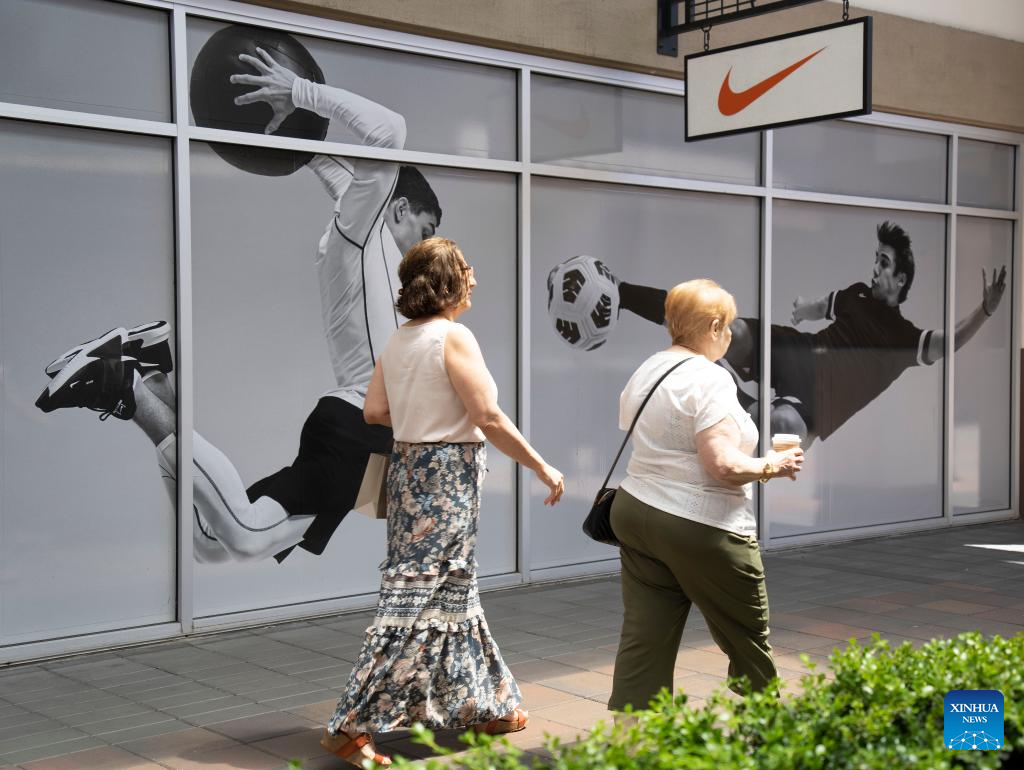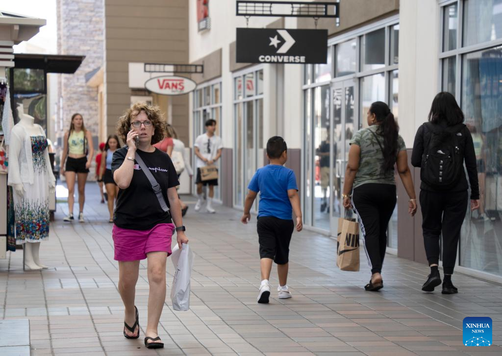 People shop at an Outlets in San Francisco Bay Area, California, the United States, July 12, 2023. The U.S. dollar suffered substantial losses on Wednesday after the U.S. consumer price index (CPI) for June showed the rate of inflation slowing to the lowest level since 2021. (Photo by Li Jianguo/Xinhua)