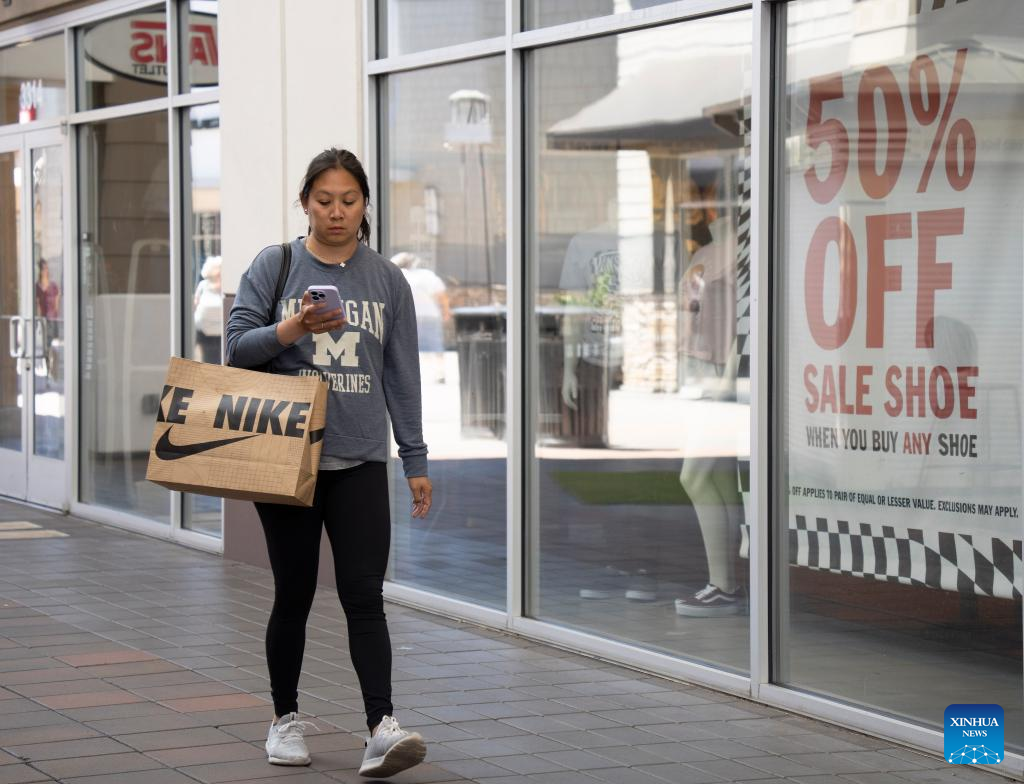 A woman shops at an Outlets in San Francisco Bay Area, California, the United States, July 12, 2023. The U.S. dollar suffered substantial losses on Wednesday after the U.S. consumer price index (CPI) for June showed the rate of inflation slowing to the lowest level since 2021.?(Photo by Li Jianguo/Xinhua)