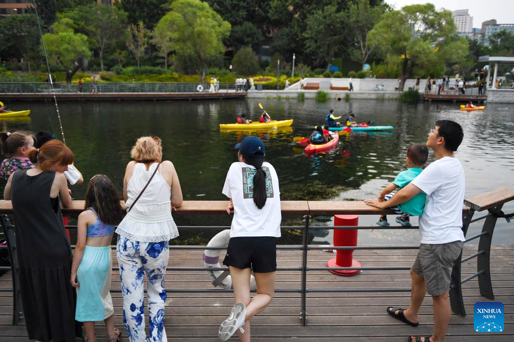 People have fun by the Liangma River in Beijing, capital of China, June 25, 2023. (Xinhua/Sun Ruibo)
