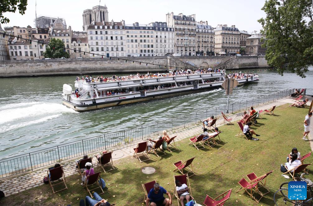 People take part in "Paris Plages," a beach festival by the Seine River in Paris, France, July 17, 2019. (Xinhua/Gao Jing)