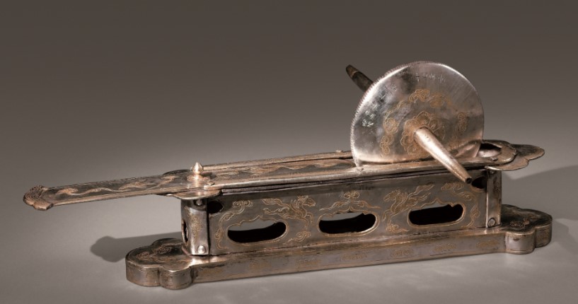 Photo shows a silver tea roller displayed at an exhibition featuring the cultural imprint of the Maritime Silk Road held at Fujian Museum in Fuzhou, southeast China's Fujian province. (Photo courtesy of Fu Qisheng)