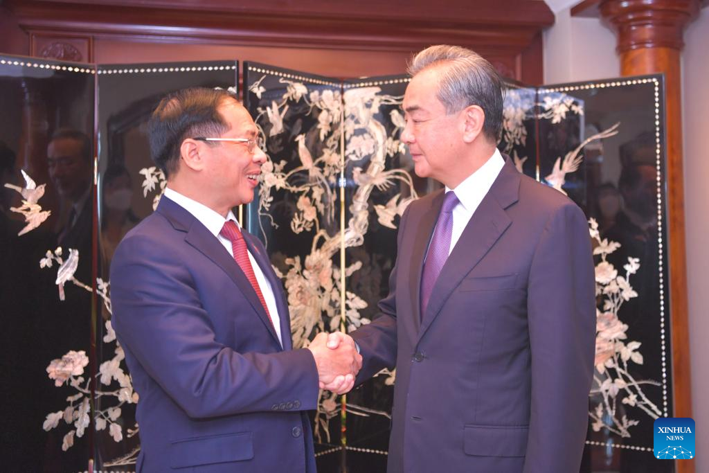 At a meeting with Vietnamese Foreign Minister Bui Thanh Son on the sidelines of a series of ASEAN foreign ministers' meetings, Wang noted that this year marks the 15th anniversary of the comprehensive strategic cooperative partnership between China and Vietnam, and the two countries took it as an opportunity to carry out high-level exchanges intensively.