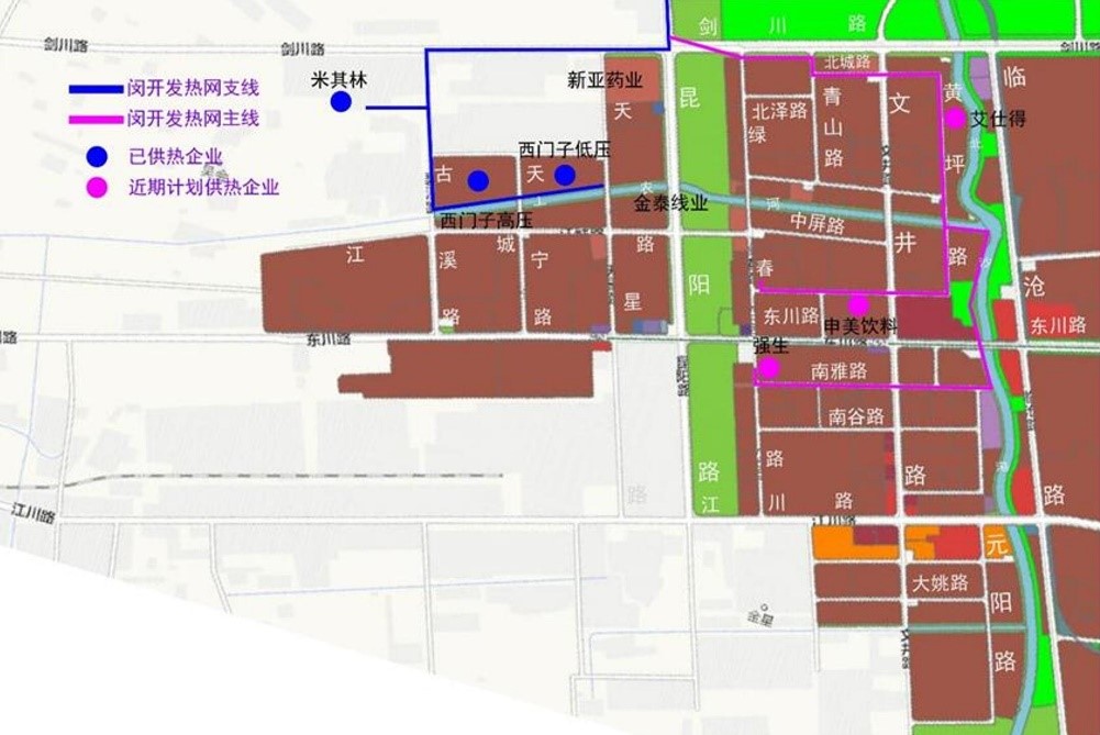 The sketch map of the heat pipelines of the central heating project in Minhang Development Zone. (Photo courtesy of Minhang Development Zone)