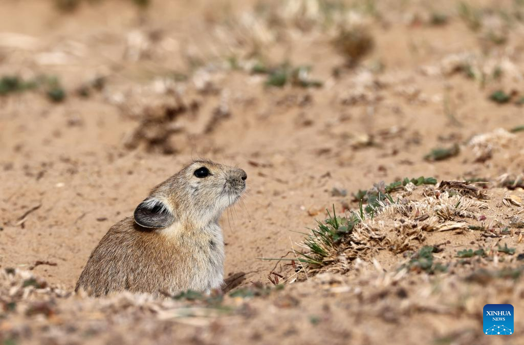 This photo taken on July 5, 2023 shows a plateau pika in the Altun Mountains National Nature Reserve in northwest China's Xinjiang Uygur Autonomous Region. (Xinhua/Wang Peng)