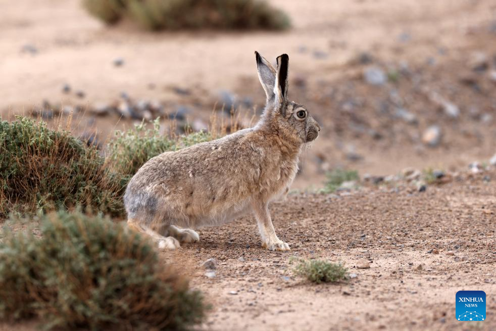 This photo taken on July 10, 2023 shows a woolly hare in the Altun Mountains National Nature Reserve in northwest China's Xinjiang Uygur Autonomous Region. (Xinhua/Wang Peng)