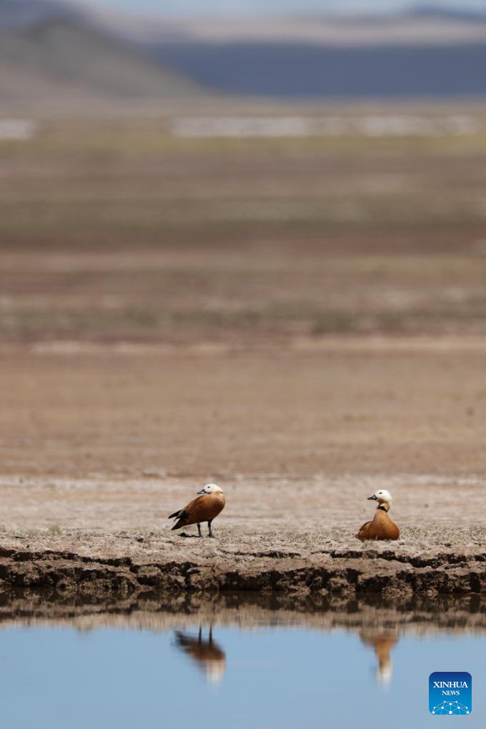 This photo taken on July 6, 2023 shows ruddy shelduck in the Altun Mountains National Nature Reserve in northwest China's Xinjiang Uygur Autonomous Region. (Xinhua/Wang Peng)