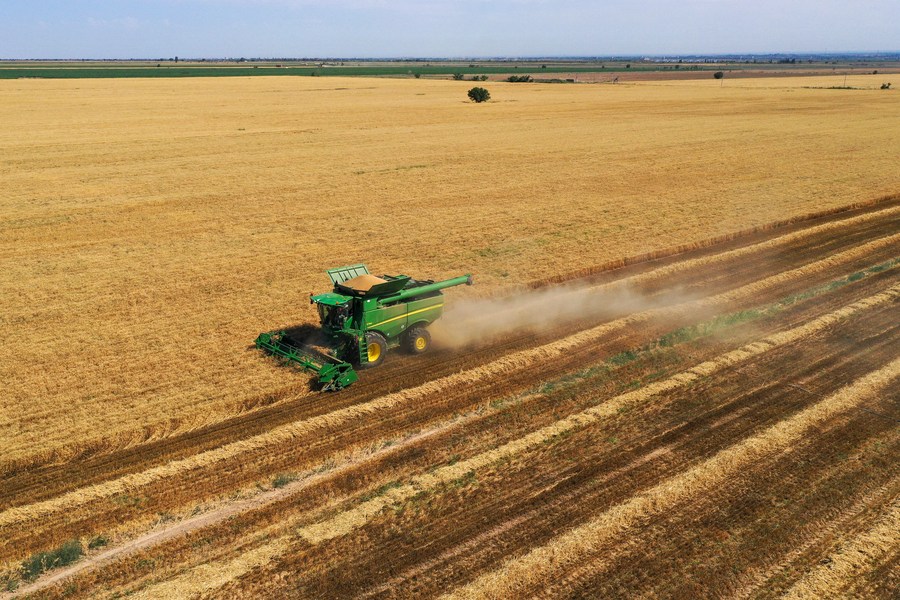 HUTUBI, July 16 (Xinhua) -- This year's summer grain harvest in northwest China's Xinjiang has entered a key period. Over 10 million mu (about 666,666.67 hectares) of wheat has been harvested so far.