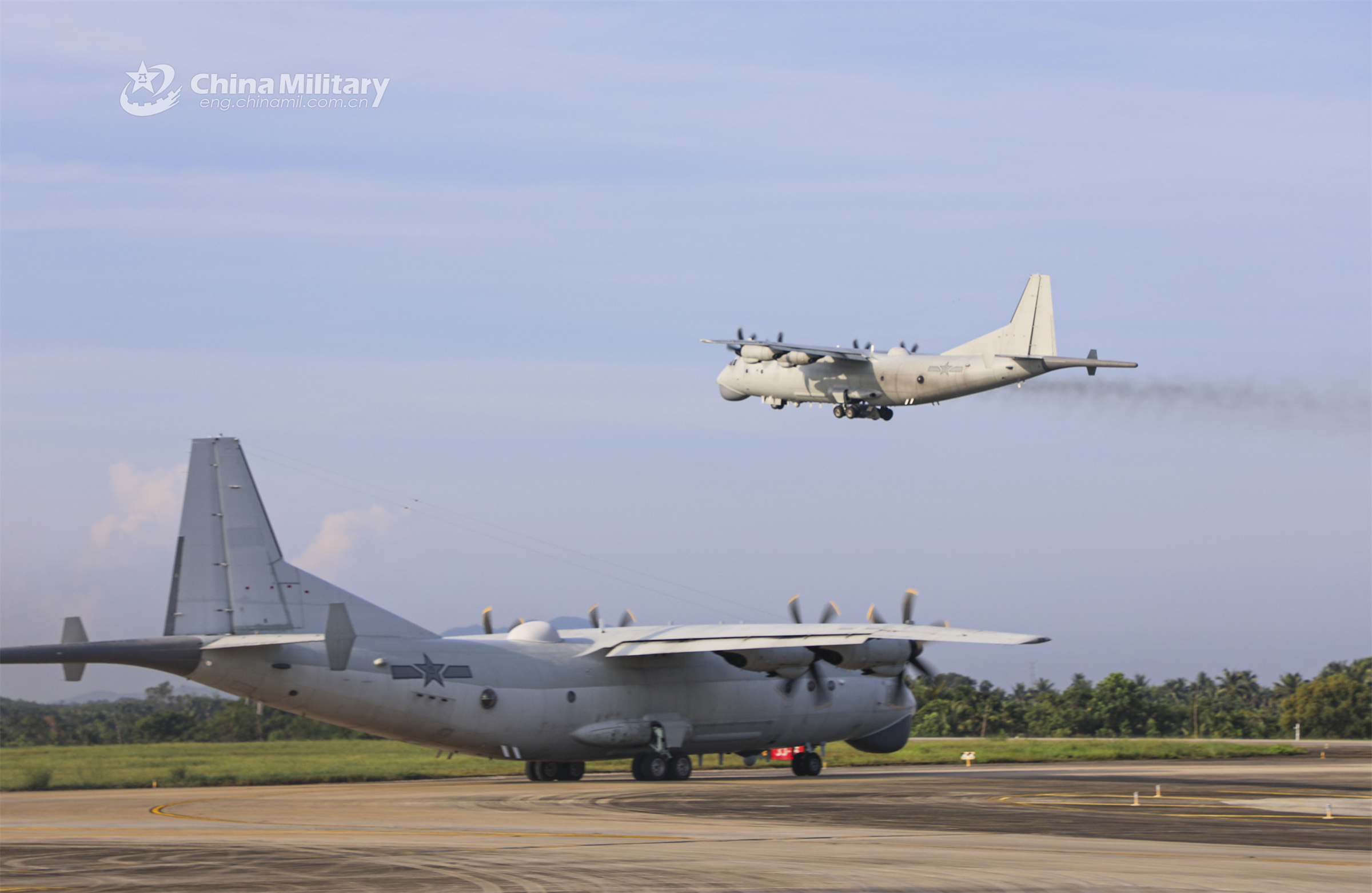Anti-submarine patrol aircraft attached to a naval aviation regiment under the PLA Southern Theater Command takes off for a round-the-clock training exercise in early July, 2023. (eng.chinamil.com.cn/Photo by Qin Qianjiang)