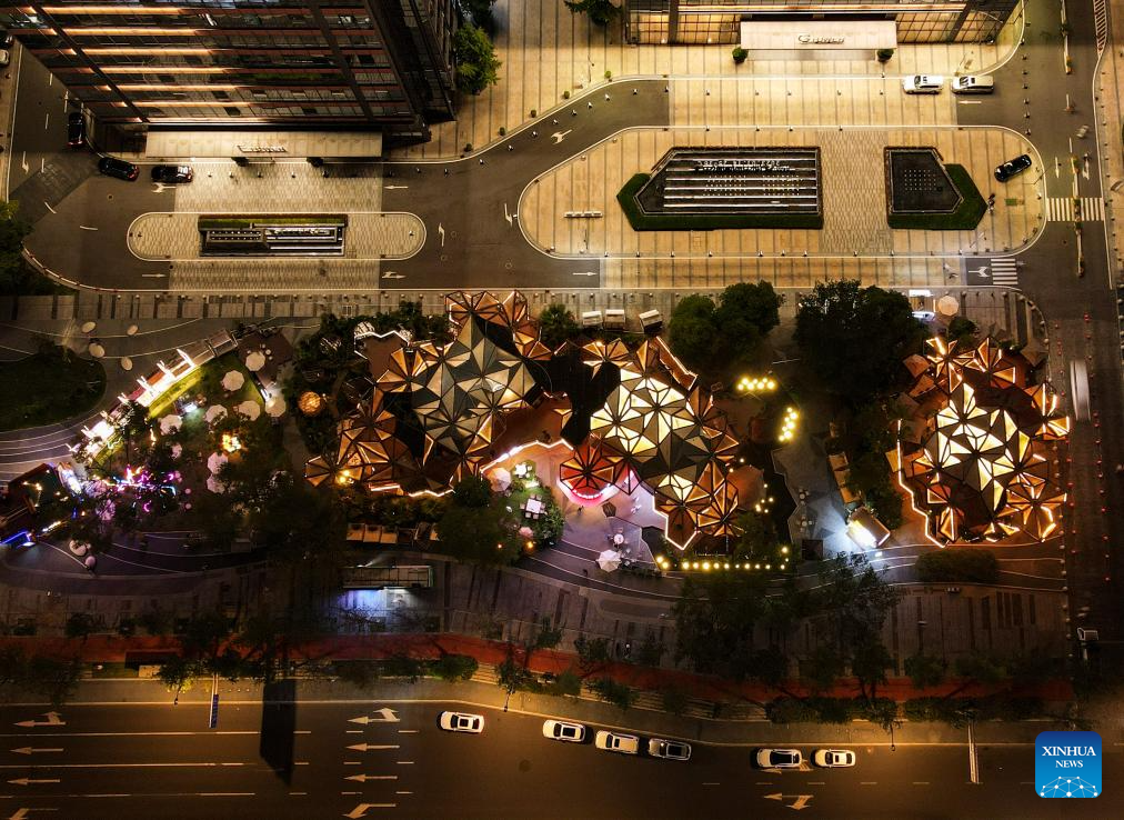 This aerial photo taken on July 14, 2023 shows a restaurant in Chengdu of southwest China's Sichuan Province. The 31st FISU Summer World University Games is scheduled to take place in Chengdu from July 28 to August 8, 2023. (Xinhua/Xu Bingjie)