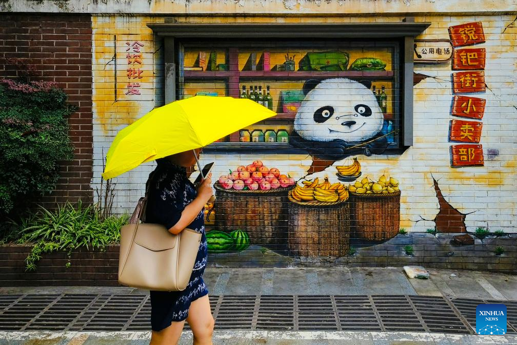 This photo taken on June 11, 2023 shows the graffiti on a building in Chengdu of southwest China's Sichuan Province. The 31st FISU Summer World University Games is scheduled to take place in Chengdu from July 28 to August 8, 2023. (Xinhua/Shen Bohan)