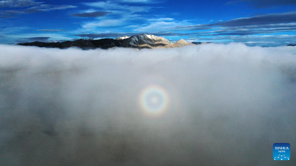 This aerial photo taken on July 10, 2023 shows a rainbow in the Altun Mountains National Nature Reserve in northwest China's Xinjiang Uygur Autonomous Region. With an average altitude of 4,580 meters, the Altun Mountains National Nature Reserve covers a total area of 45,000 square kilometers and is a representative of plateau desert ecosystem in China. (Xinhua/Wang Peng)