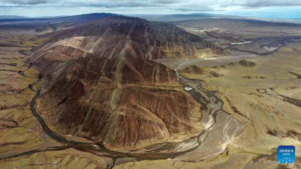 This aerial photo taken on June 30, 2023 shows a wetland in the Altun Mountains National Nature Reserve in northwest China's Xinjiang Uygur Autonomous Region. With an average altitude of 4,580 meters, the Altun Mountains National Nature Reserve covers a total area of 45,000 square kilometers and is a representative of plateau desert ecosystem in China. (Xinhua/Cai Yang)