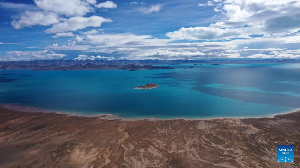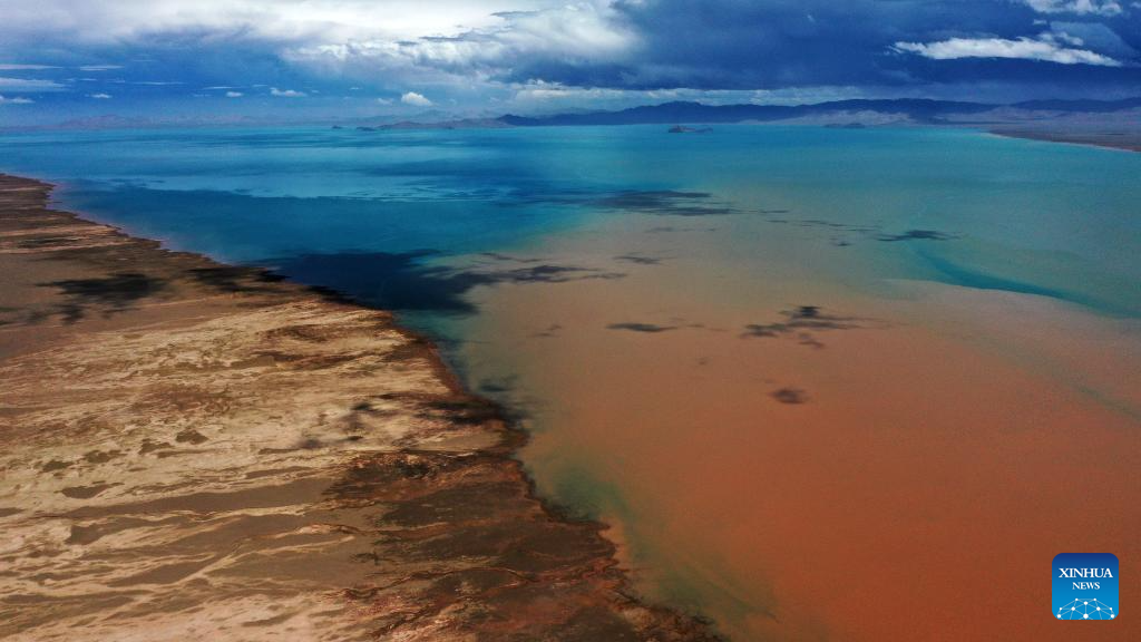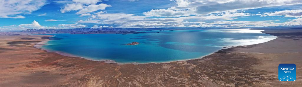 This aerial photo taken on July 5, 2023 shows a lake in the Altun Mountains National Nature Reserve in northwest China's Xinjiang Uygur Autonomous Region. With an average altitude of 4,580 meters, the Altun Mountains National Nature Reserve covers a total area of 45,000 square kilometers and is a representative of plateau desert ecosystem in China. (Xinhua/Wang Peng)