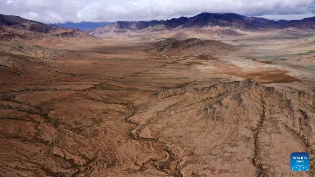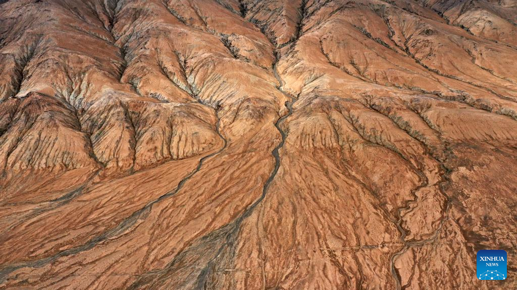 This aerial photo taken on July 6, 2023 shows valleys in the Altun Mountains National Nature Reserve in northwest China's Xinjiang Uygur Autonomous Region. With an average altitude of 4,580 meters, the Altun Mountains National Nature Reserve covers a total area of 45,000 square kilometers and is a representative of plateau desert ecosystem in China. (Xinhua/Wang Peng)