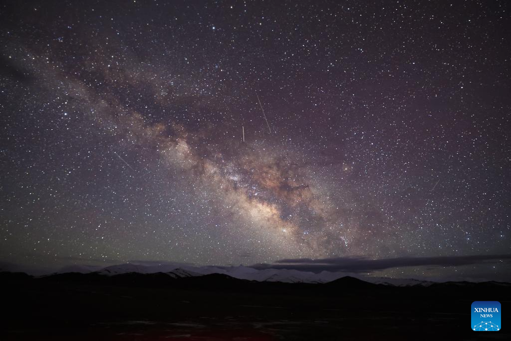 This photo taken on July 8, 2023 shows a night view in the Altun Mountains National Nature Reserve in northwest China's Xinjiang Uygur Autonomous Region. With an average altitude of 4,580 meters, the Altun Mountains National Nature Reserve covers a total area of 45,000 square kilometers and is a representative of plateau desert ecosystem in China. (Xinhua/Wang Peng)