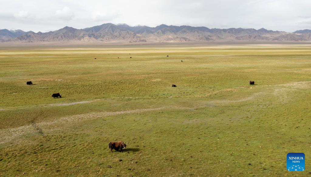 Wild yaks graze at a grassland in the Altun Mountains National Nature Reserve in northwest China's Xinjiang Uygur Autonomous Region, July 1, 2023. With an average altitude of 4,580 meters, the Altun Mountains National Nature Reserve covers a total area of 45,000 square kilometers and is a representative of plateau desert ecosystem in China. (Xinhua/Cai Yang)