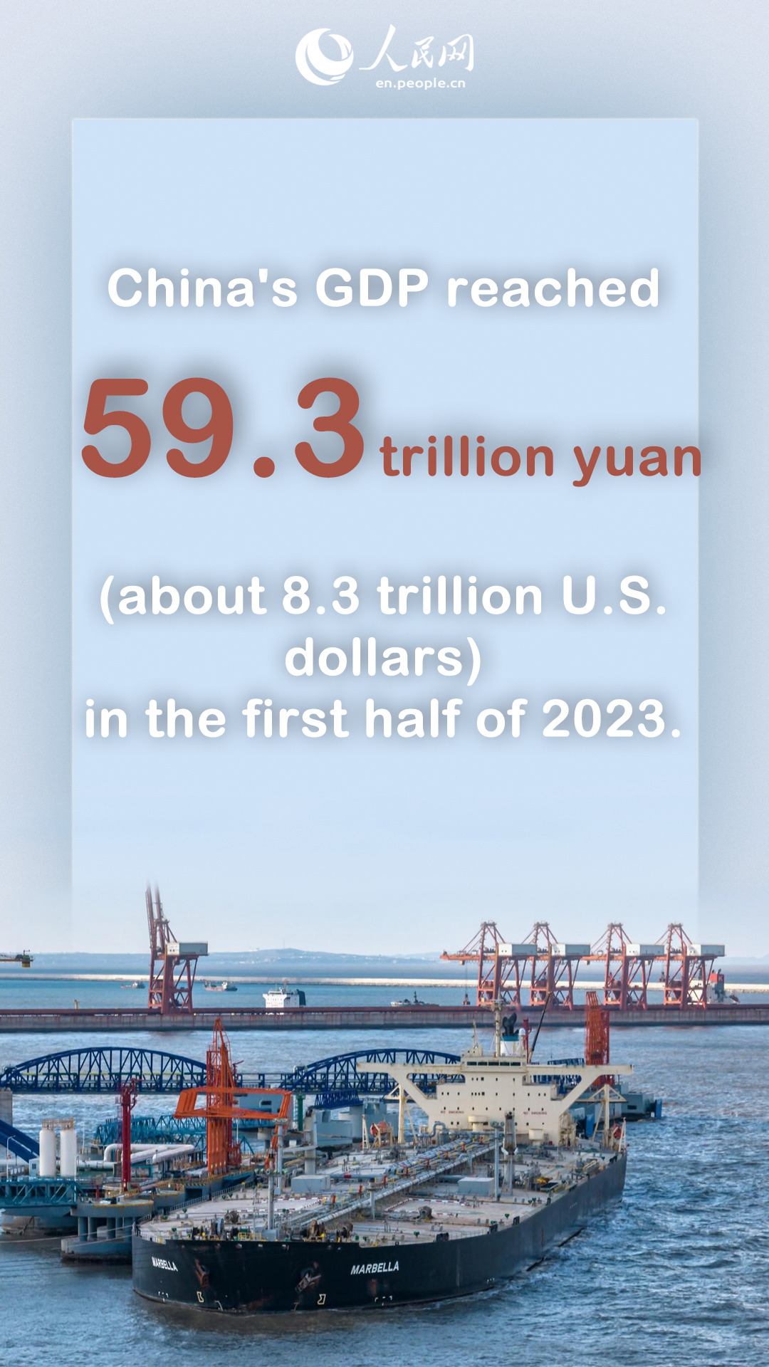 China's GDP reached 59.3 trillion yuan (about 8.3 trillion U.S. dollars) in the first half of 2023.