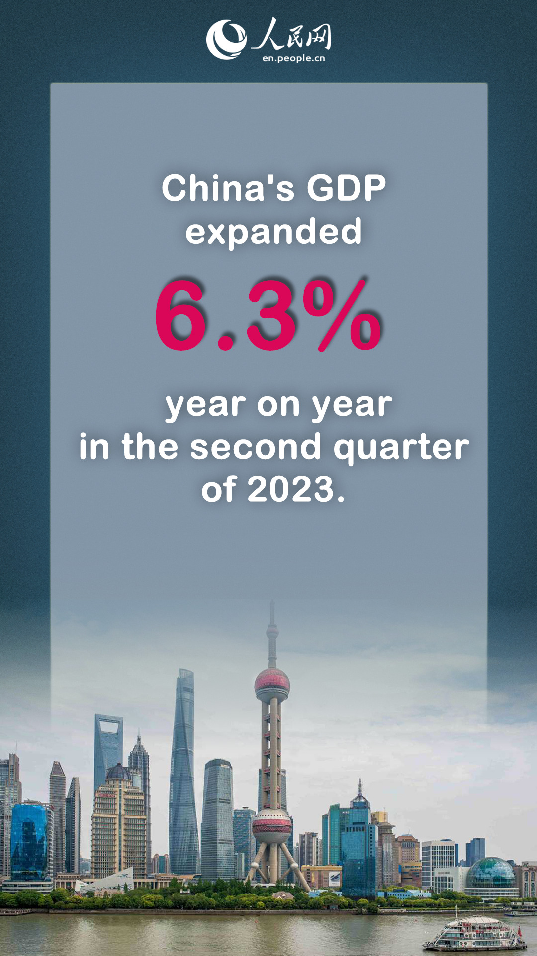 China's GDP expanded 6.3 percent year on year in the second quarter of 2023.