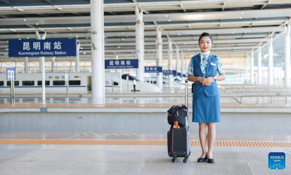 Yi Bofeng hails from Mengla County in Yunnan Province. After graduating as a Lao major from a technical college in the provincial capital Kunming in 2020, she was recruited as a train attendant under China Railway Kunming Bureau Group Co., Ltd.