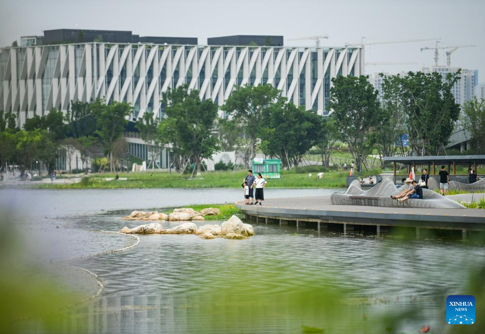 People have fun at a park in Chengdu, capital of southwest China's Sichuan Province, July 12, 2023. The 31st International University Sports Federation (FISU) Summer World University Games will be held in Chengdu from July 28 to August 8. (Xinhua/Wang Xi)