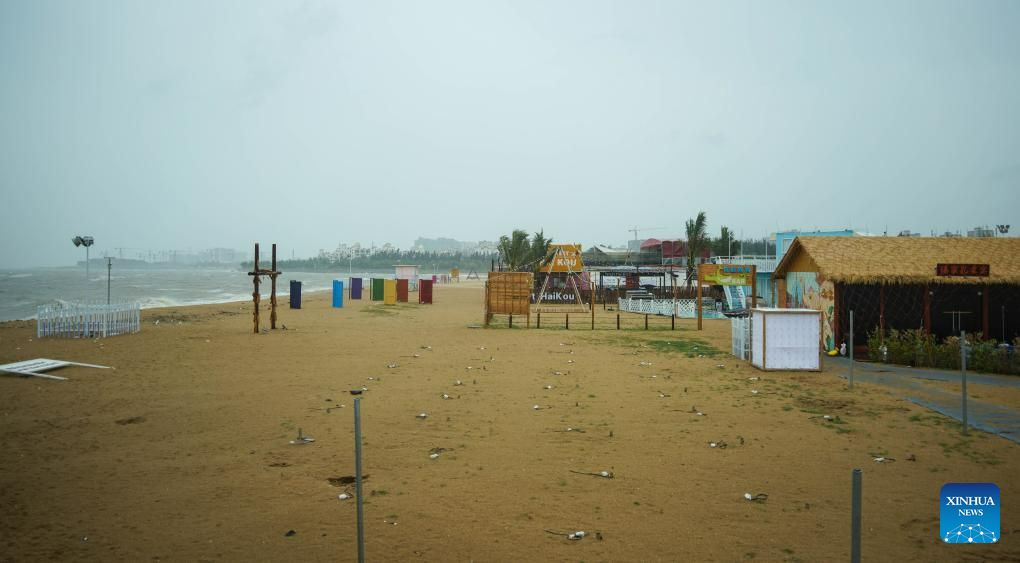 Booths at a market have been removed because of Typhoon Talim in Haikou, south China's Hainan Province, July 17, 2023. South China's island province of Hainan resumed the operation of flights and the Hainan Roundabout Railway on Tuesday, as Typhoon Talim, the fourth this year, weakened to the level of a tropical storm, said local authorities on Tuesday. (Xinhua/Fan Yuqing)