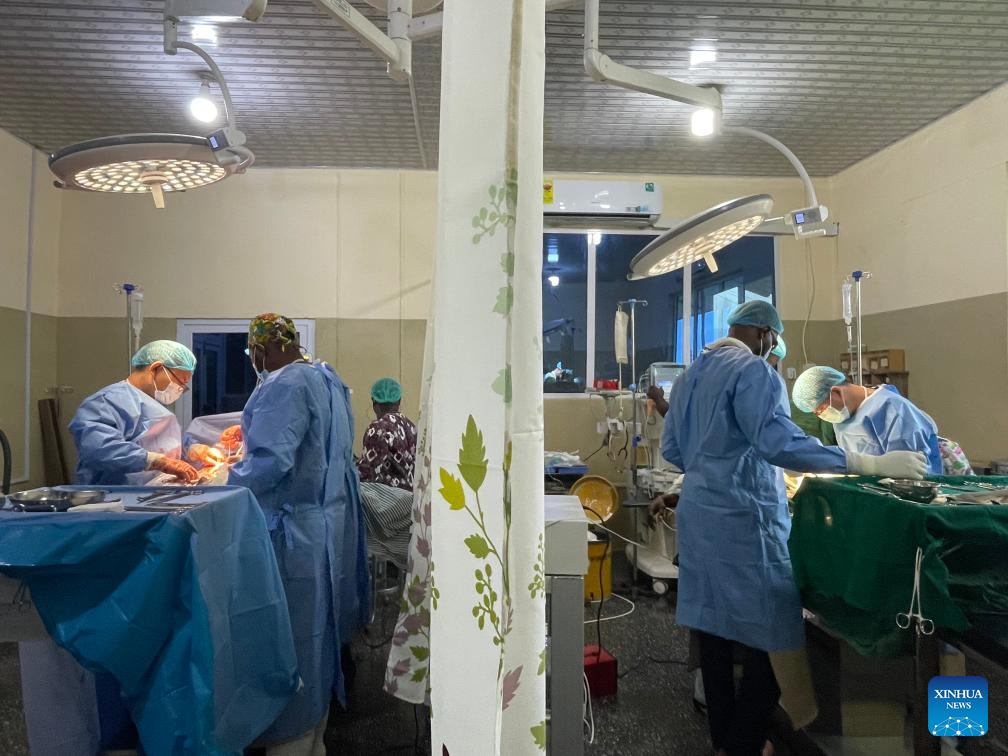 Photo provided by the Chinese medical team to Ghana and taken on July 10, 2023 shows Chinese and Ghanaian doctors performing surgeries at a hospital in Oti Region, Ghana. The 12th batch of the Chinese medical team to Ghana has successfully carried out more than 100 free surgeries on local patients living in some poverty-stricken areas of Ghana's Oti Region, the team told Xinhua on July 18. (Xinhua)