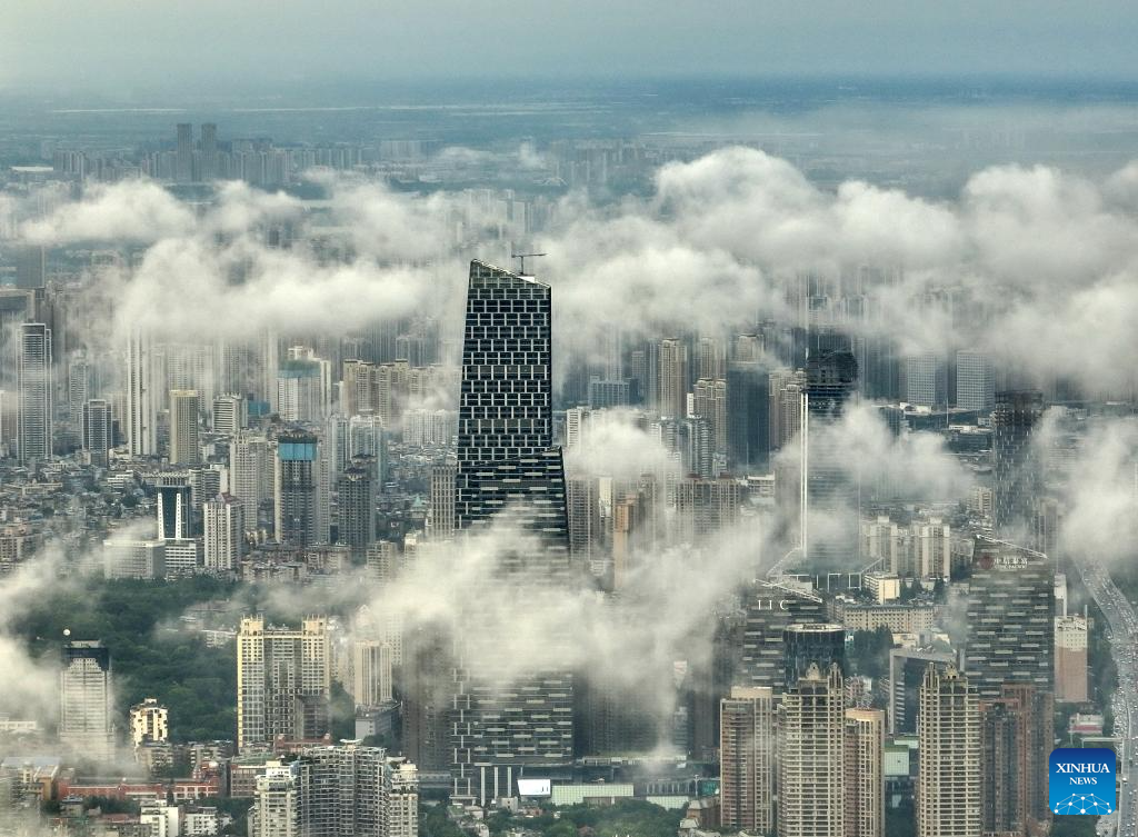 This photo taken on July 19, 2023 shows a view of Wuhan, central China's Hubei Province, after a rain. (Photo by Zhao Jun/Xinhua)