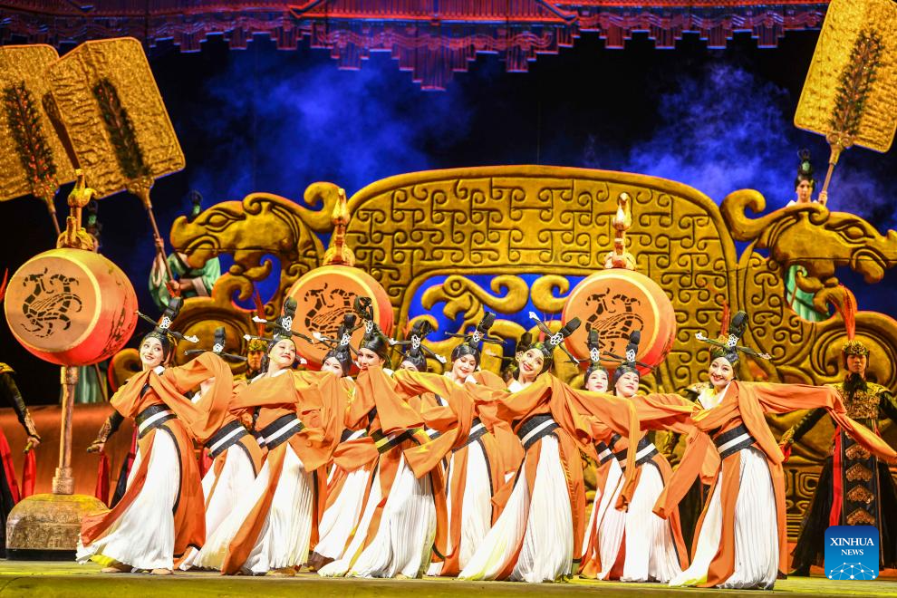 Actors perform during the 6th China Xinjiang International Dance Festival in Urumqi, northwest China's Xinjiang Uygur Autonomous Region, July 20, 2023. (Xinhua/Hu Huhu)