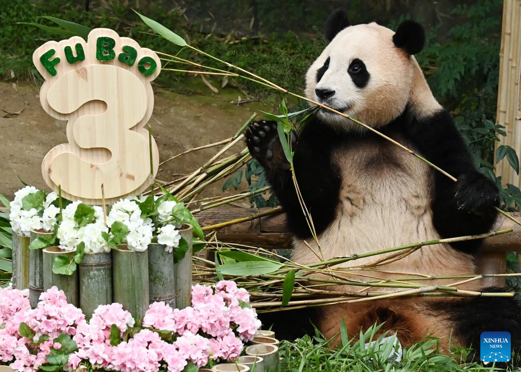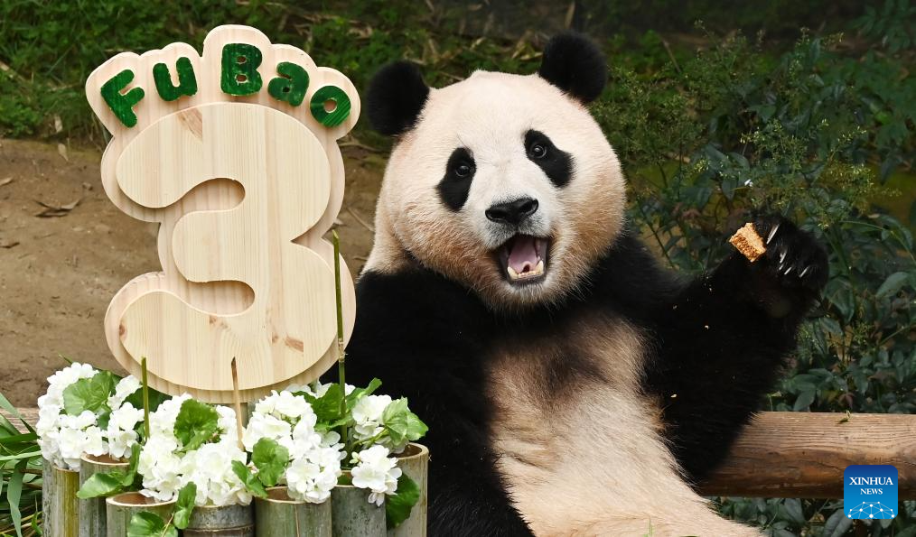 Giant panda celebrates 3rd birthday in Yongin, South Korea