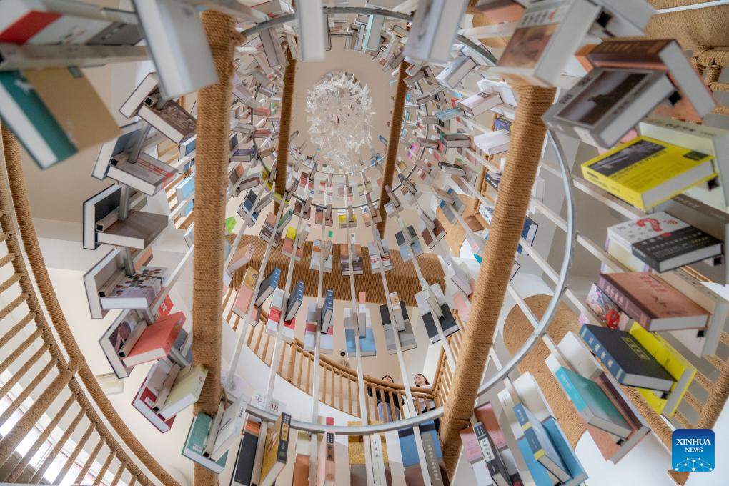This photo taken on July 20, 2023 shows a library at the Banli Village of Lancang Lahu Autonomous County, southwest China's Yunnan Province. In recent years, Lancang Lahu Autonomous County has harnessed its rich cultural and tourism resources, promoting high-quality integration of culture and tourism through industrial linkage and improving service systems. According to statistics, the county received over 3 million tourists from January to May in 2023, generating a comprehensive tourism revenue of 3.388 billion Yuan (about 0.47 billion U.S. dollars). (Xinhua/Hu Chao)