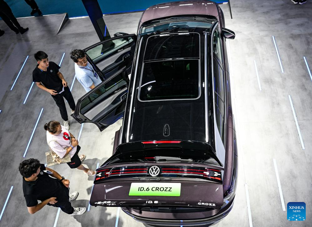 A Volkswagen ID.6 CROZZ vehicle is displayed during the 20th Changchun International Auto Expo in Changchun, capital of northeast China's Jilin Province, July 20, 2023.