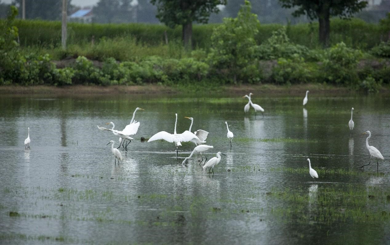 Egrets play in a wetland in Bozhou, east China's Anhui province. (Photo by Cheng Weiru/People's Daily Online)