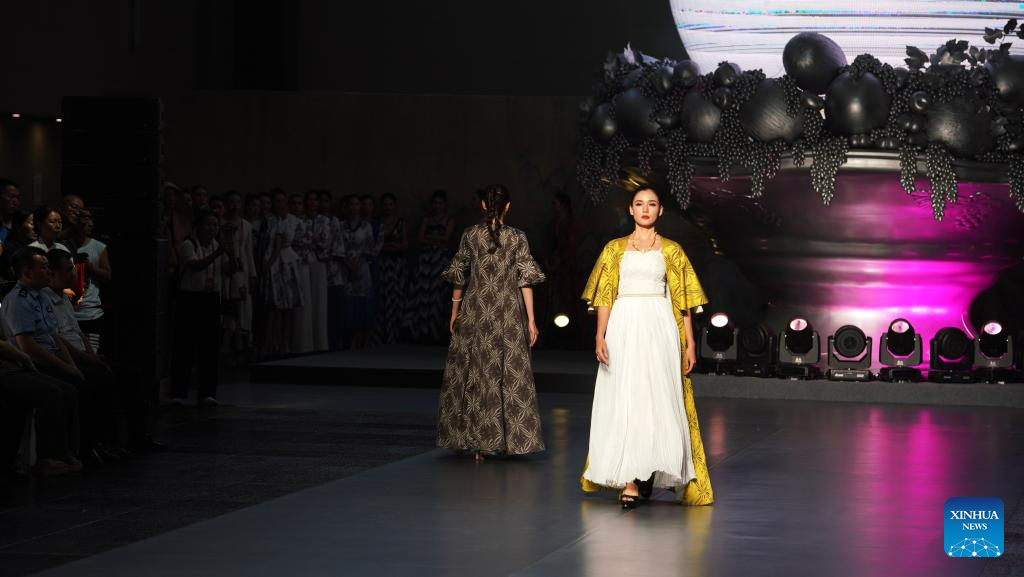 Models present creations during a fashion show on the sidelines of the 6th China Xinjiang International Dance Festival, in Urumqi, northwest China's Xinjiang Uygur Autonomous Region, July 22, 2023. (Xinhua/Zhang Xiaocheng)