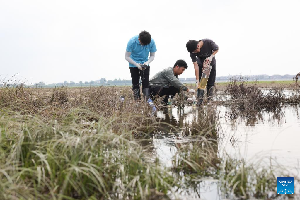 Researchers conduct studies on ecosystem of Dongting Lake wetland in C China
