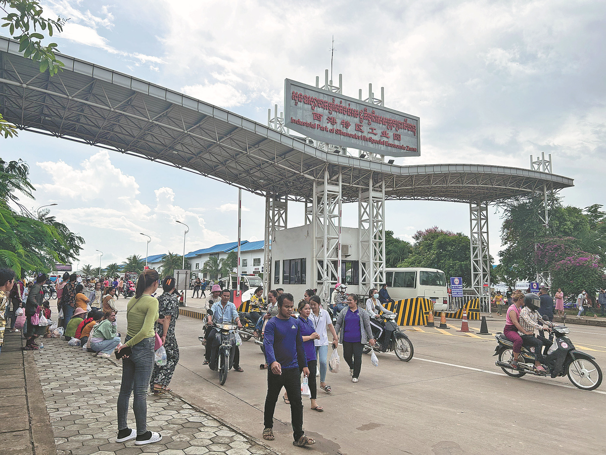 Workers commute to and from the Sihanoukville Special Economic Zone on motorcycles. (China Daily/Lin Shujuan)?