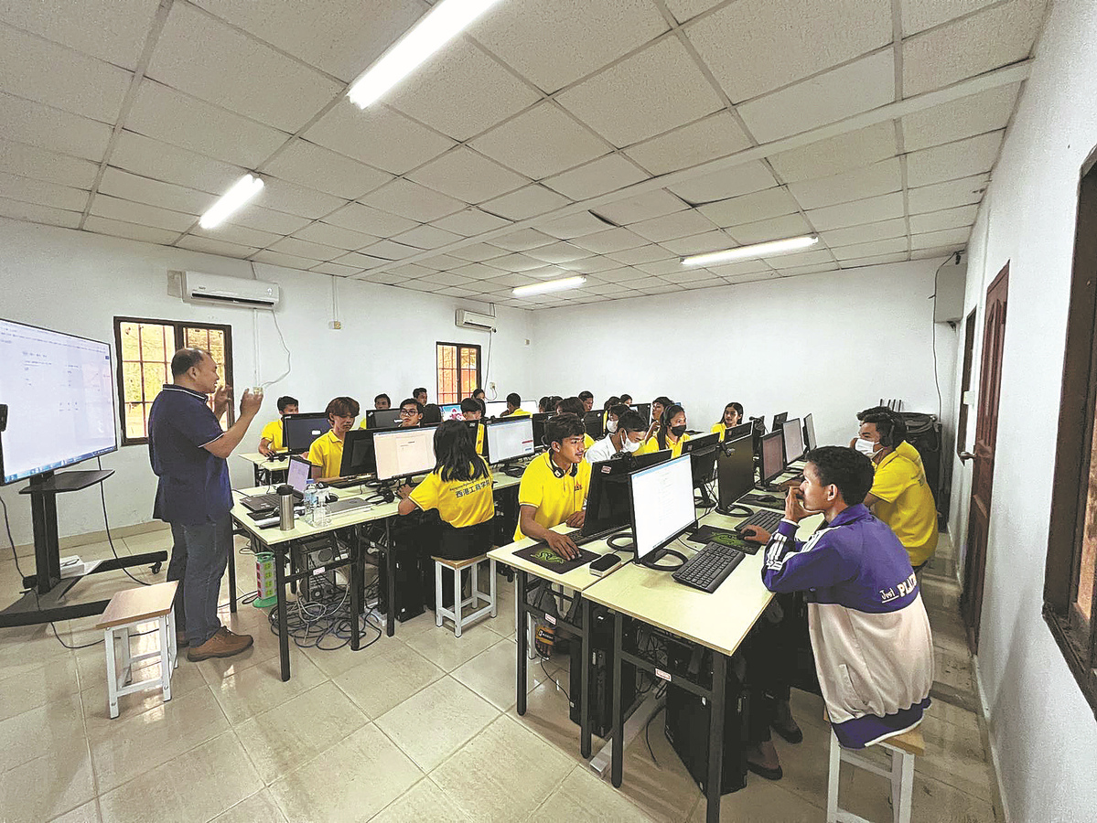 Students attend a language class at Sihanoukville Institute of Business and Technology located in the Sihanoukville Special Economic Zone. (China Daily/Lin Shujuan)?