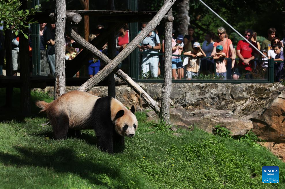 People watch the giant panda Yuan Meng at Beauval Zoo in Saint-Aignan, France, on July 24, 2023. Yuan Meng, the first giant panda born in France in 2017, will return to China on Tuesday. (Xinhua/Gao Jing)