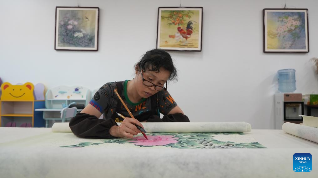 A worker paints at a workshop in Juye County, Heze City of east China's Shandong Province, July 24, 2023. (Xinhua/Jia Yunpeng)