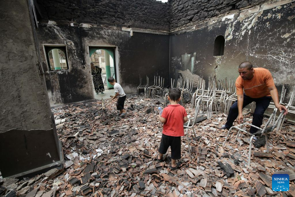 A man inspects a house burned in a wildfire in Bejaia Province, Algeria, on July 25, 2023. The death toll from wildfires in northern Algeria has risen to 34, including 10 soldiers, the Interior Ministry said in an update on Monday. The fires started overnight on Sunday mainly in the provinces of Bejaia, Jijel, and Bouira, but quickly spread due to strong winds, causing significant damage. (Xinhua)