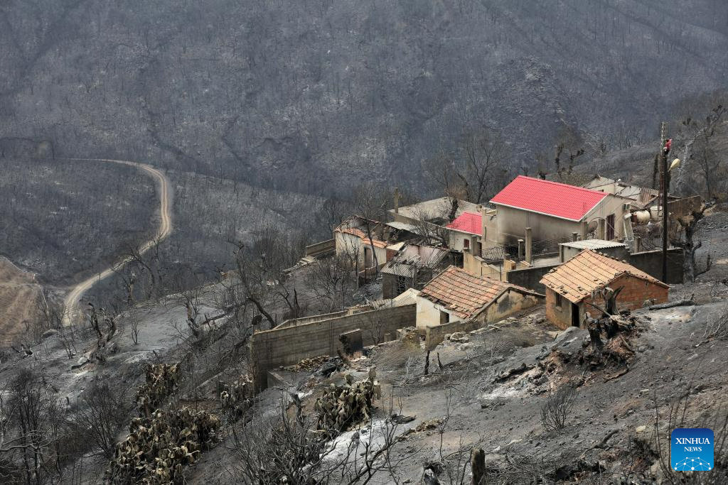 Photo taken on July 25, 2023 shows an area burned in a wildfire in Bejaia Province, Algeria. The death toll from wildfires in northern Algeria has risen to 34, including 10 soldiers, the Interior Ministry said in an update on Monday. The fires started overnight on Sunday mainly in the provinces of Bejaia, Jijel, and Bouira, but quickly spread due to strong winds, causing significant damage. (Xinhua)