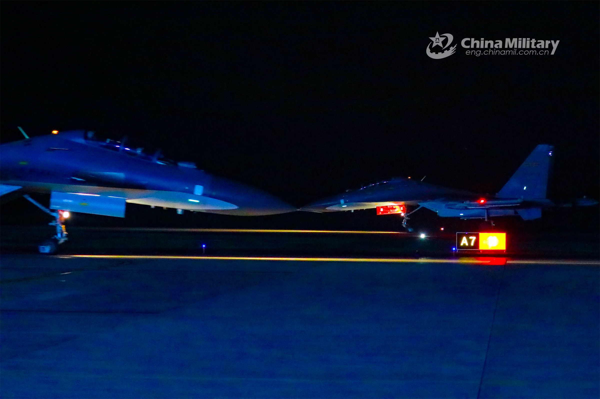 Fighter jets attached to a unit of air force under the PLA Eastern Theater Command taxi on the runway during a round-the-clock flight training exercise in early July, 2023. (eng.chinamil.com.cn/Photo by Li Kai)