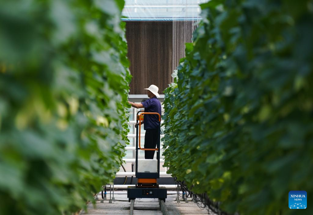 A farmer works at a demonstration park for standardized vegetable production in Shouguang City of Weifang, east China's Shandong Province, July 26, 2023.?(Xinhua/Zhang Haobo)