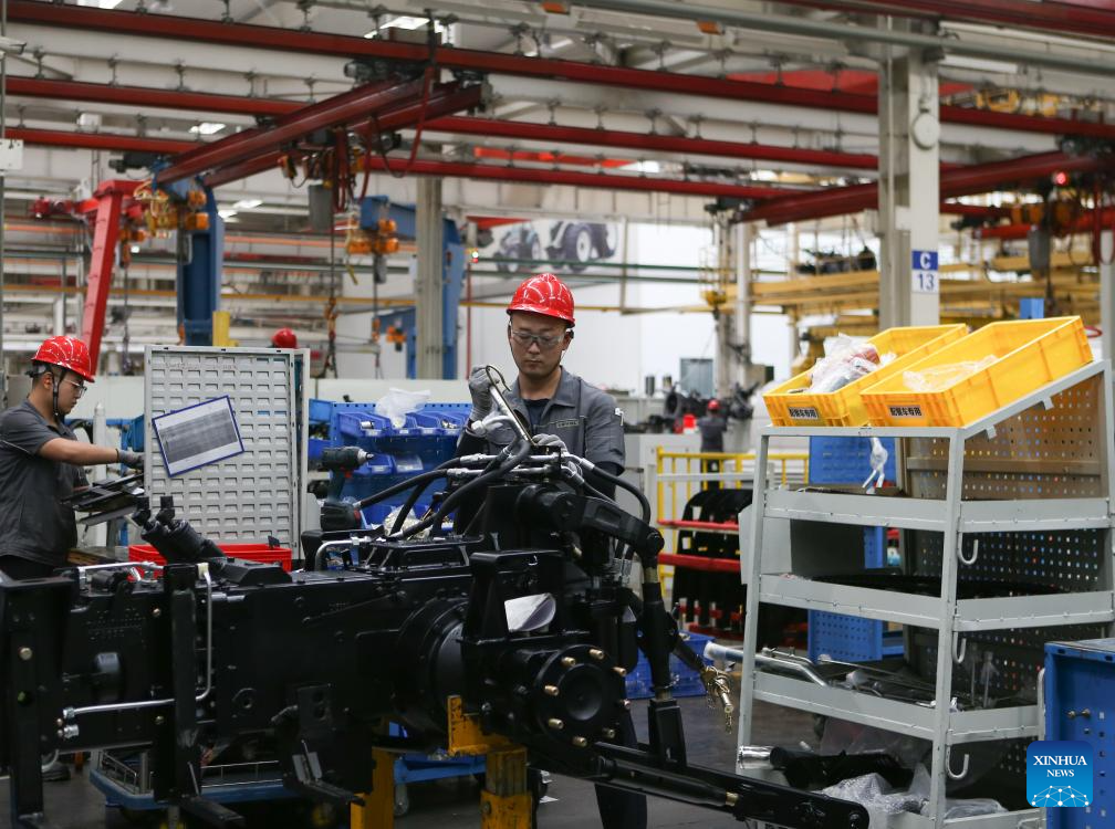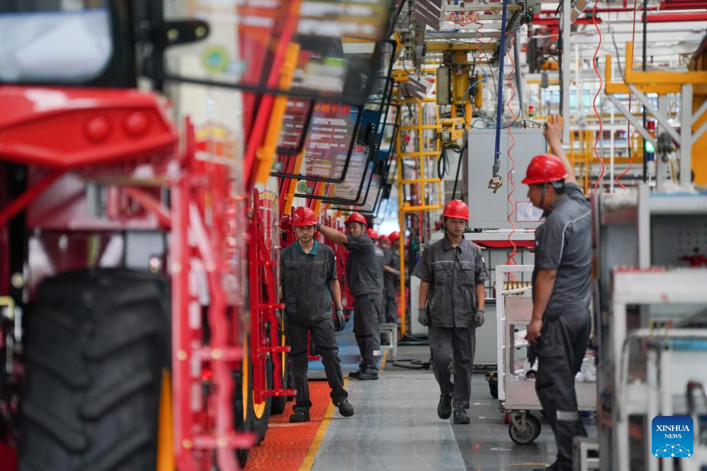 Workers work on the production line of Weichai Lovol Intelligent Agricultural Technology Co., Ltd. in Weifang City, east China's Shandong Province, July 26, 2023.?(Xinhua/Zhang Haobo)