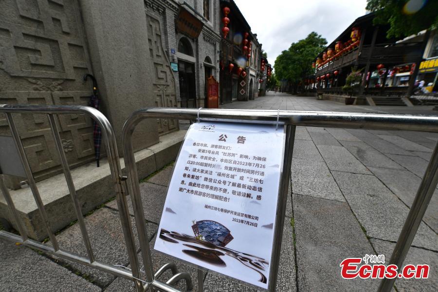 The Three Lanes and Seven Alleys, a historic and cultural area in Fuzhou, is temporarily closed as Typhoon Doksuri approaches in Fuzhou, south China's Fujian Province, July 27, 2023. (Photo: China News Service/Wang Dongming)