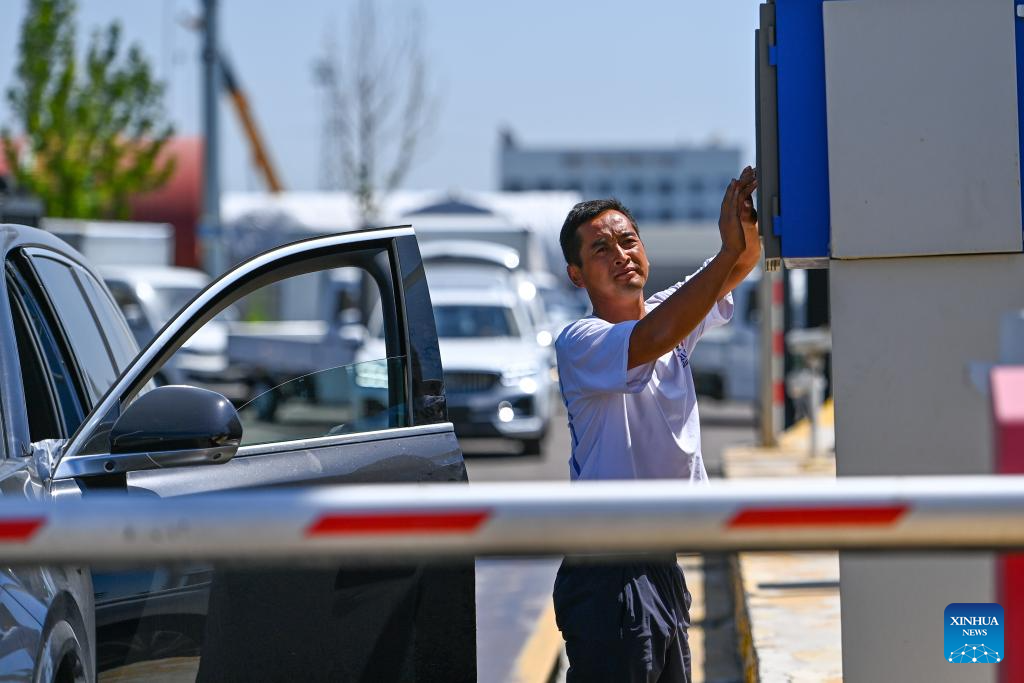 A driver swipes a card to enter the vehicles checkpoint of the Horgos Customs in northwest China's Xinjiang Uygur Autonomous Region, July 26, 2023.?(Xinhua/Ding Lei)