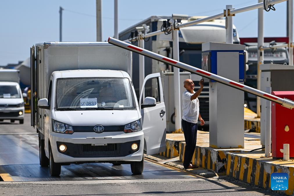 Domestically-made vehicles enter the vehicles checkpoint of the Horgos Customs in northwest China's Xinjiang Uygur Autonomous Region, July 26, 2023.?(Xinhua/Ding Lei)
