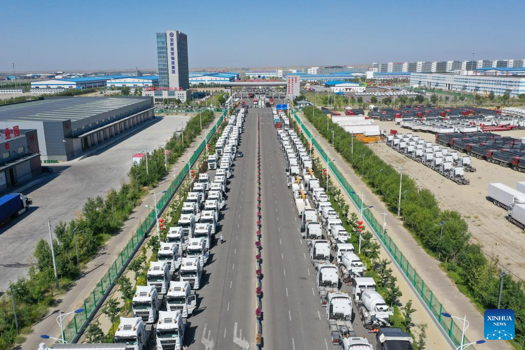 This photo taken on July 26, 2023 shows domestically-made vehicles at the Horgos Port in northwest China's Xinjiang Uygur Autonomous Region.?(Xinhua/Ding Lei)