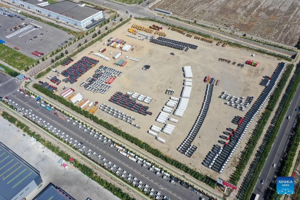 This aerial photo taken on July 26, 2023 shows domestically-made vehicles at the Horgos comprehensive bonded area in northwest China's Xinjiang Uygur Autonomous Region. (Xinhua/Ding Lei)